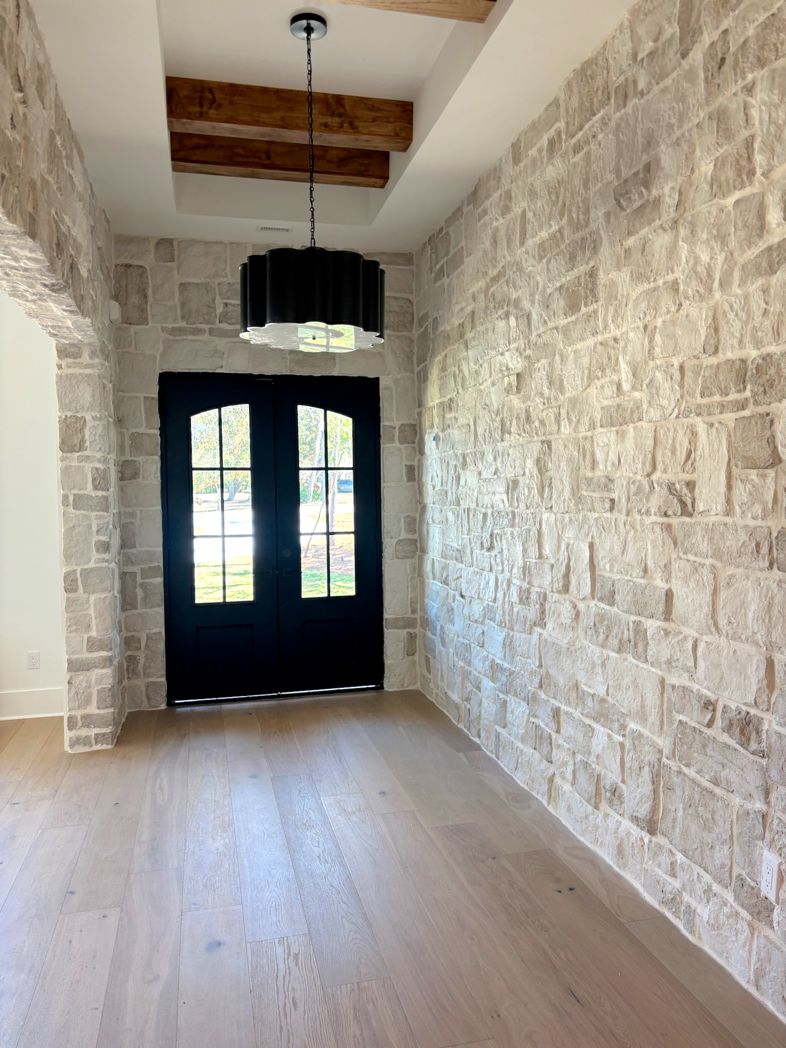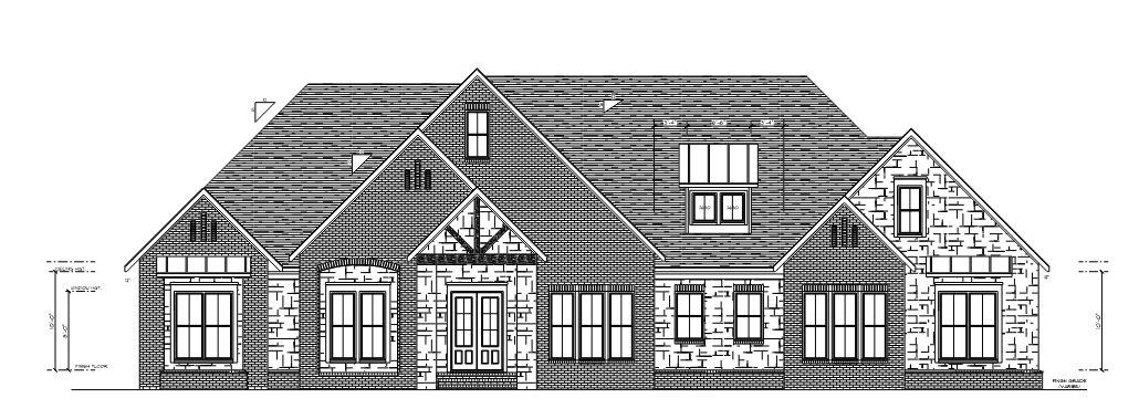The exterior combines a steep roofline, a dramatic gable, and elegant transitions of brick and stone for a commanding presence. A side-facing three-car garage keeps the front façade pristine. Inside, the open-concept living and kitchen area flows into a huge covered patio with a fireplace, perfect for outdoor entertaining. A dedicated dining room, sunroom with vaulted ceilings, and a master suite with a spa-like bath and closet offer both style and comfort.